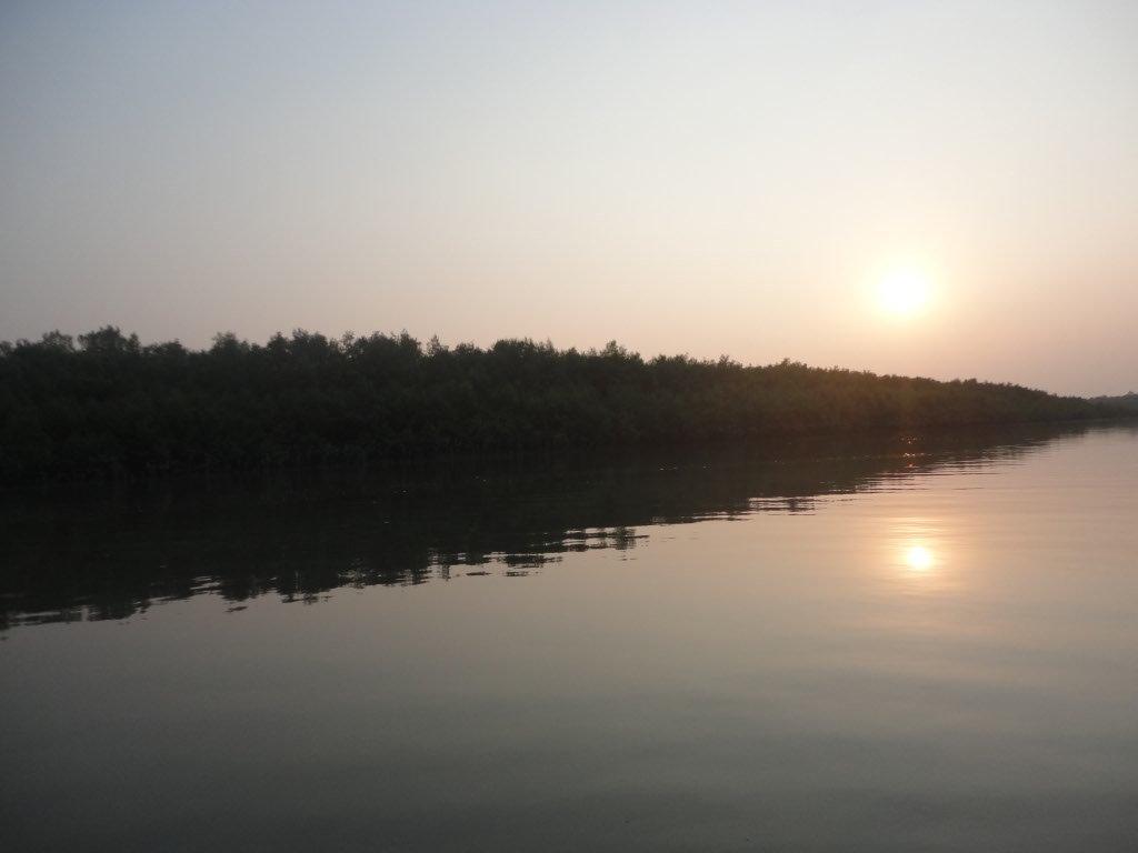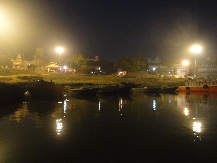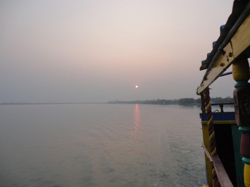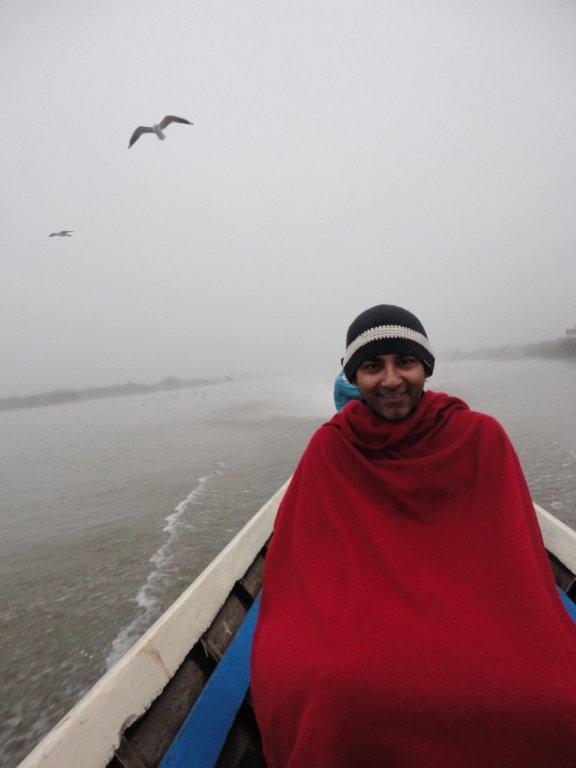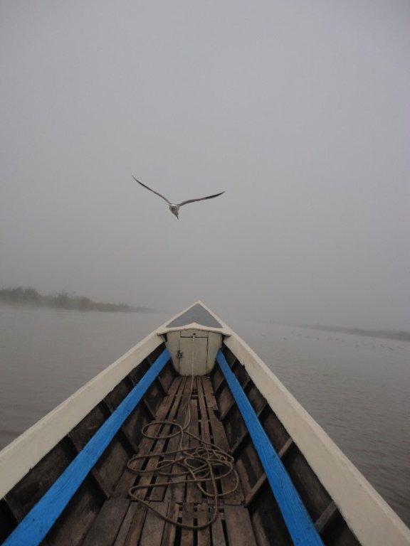 The next morning as our boat pulled out of the pier, a dark, dense fog surrounded us. We could hear the loud diesel engine noises of the early morning boat traffic but we couldn’t see more than a 100 feet in front of us. It was ever so cold and we were wrapped in thick blankets. The wind chill from the boat moving can get quite cold. As our boat worked its way out of the canal and further away from the village, the fog seemed to get denser.